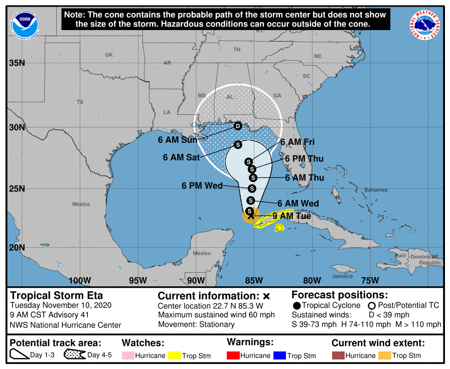 Tropical Storm Eta 2020 Path Update Hurricane And Surge Watches For Florida Big Long Range Path Shifts Possible Al Com